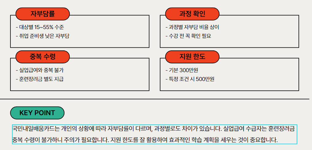 이외에도 간호조무사, 사회복지사 등 자격증 중심의 과정도 다양하게 운영되고 있어요. 과정별 자부담 비율도 달라질 수 있으니, 수강 신청 전에 꼭 확인해보는 게 좋습니다.