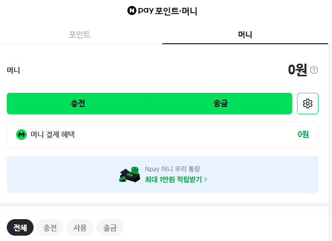 계좌나 카드로 직접 충전한 금액은 네이버페이 머니로 전환돼 출금 신청을 할 수 있습니다. 반면 쇼핑 적립이나 이벤트 참여로 얻은 포인트는 지정된 가맹점에서만 사용할 수 있어요.