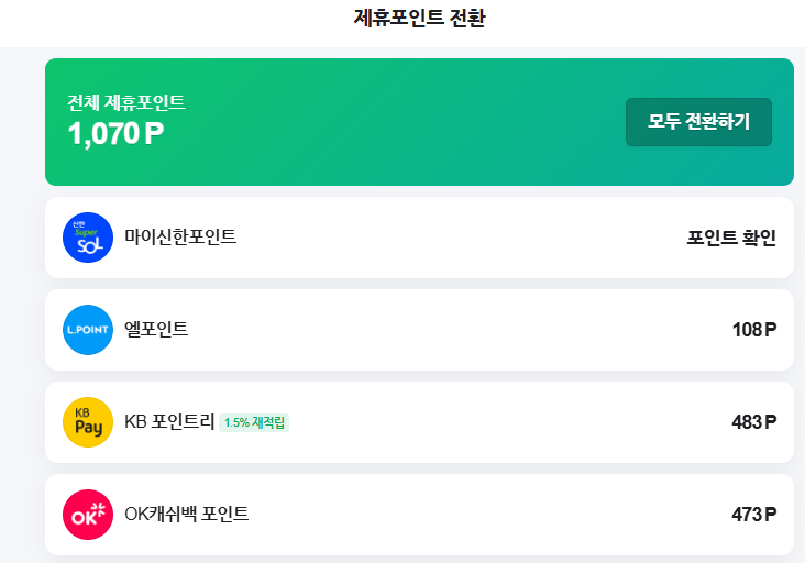 이외에도 페이코, 하나머니, SSG머니 등과 같은 간편결제 플랫폼에서도 일부 전환 혜택을 제공하니, 자주 사용하는 앱이 있다면 살펴보시는 것도 좋습니다.
