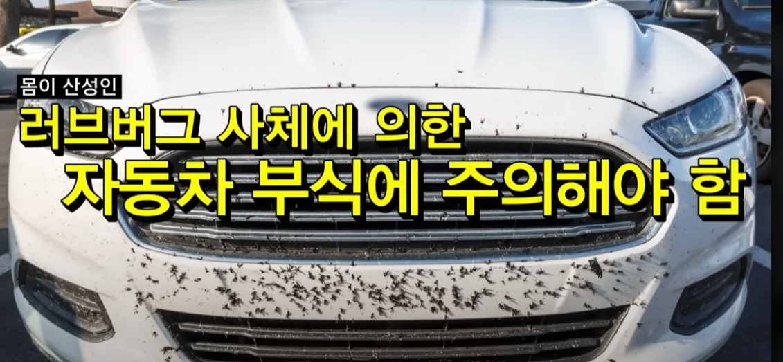 러브버그는 특히 차량 전면 유리에 들러붙거나 엔진 그릴에 사체가 끼는 경우가 많습니다. 이때 사체에서 나오는 산성 물질이 도장면을 손상시킬 수 있어요. 캠핑을 다녀온 후나 고속도로 주행 후에는 벌레 제거 전용 클리너나 빠른 세차를 통해 차량을 관리하는 것이 필요합니다.