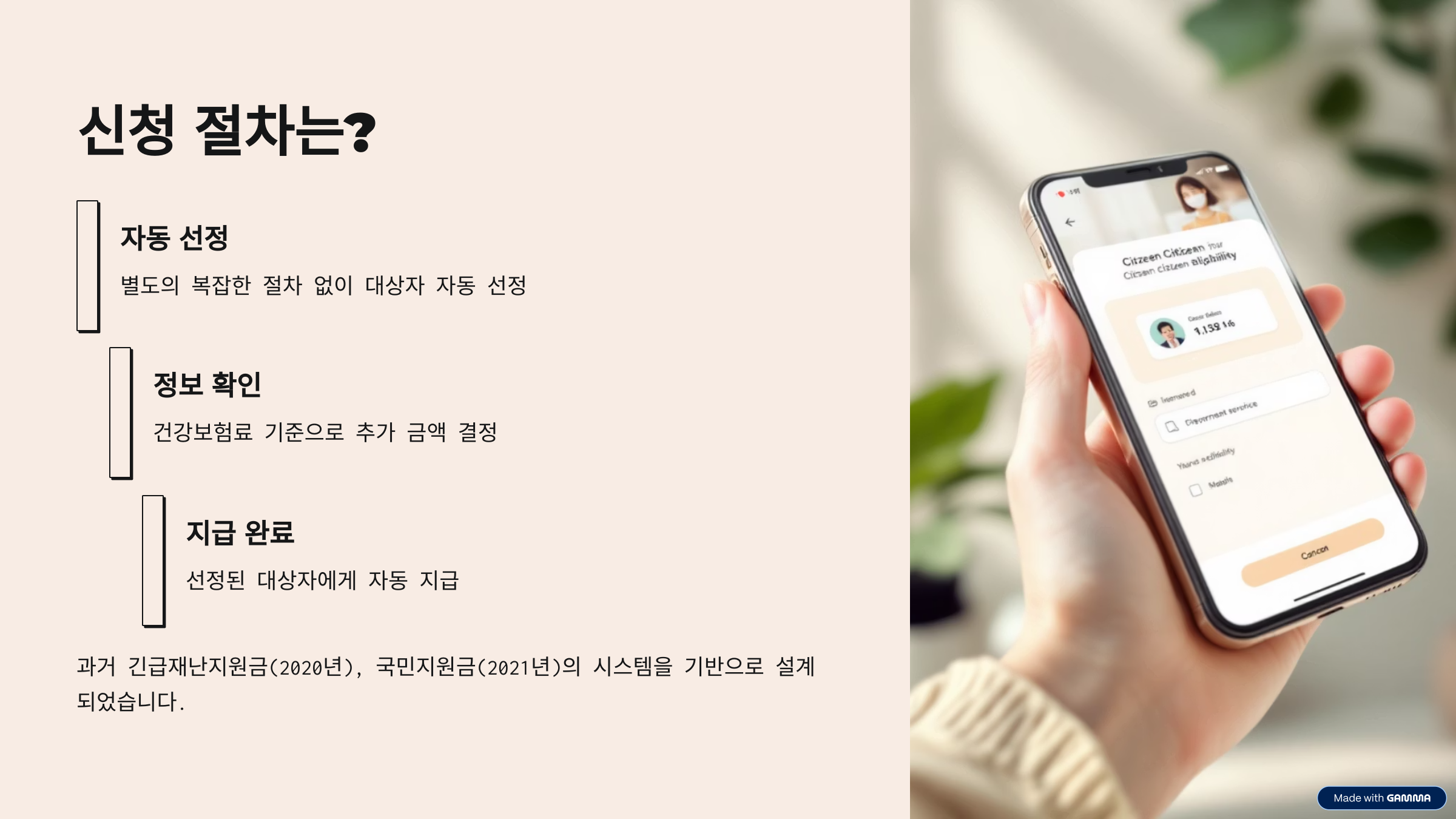 이번 정책은 과거에 시행됐던 긴급재난지원금(2020년), 국민지원금(2021년)의 시스템을 기반으로 설계되었습니다. 별도의 복잡한 절차 없이, 대상자는 자동 선정 후 지급받게 됩니다. 다만 건강보험료 기준으로 추가 금액이 결정되므로, 이와 관련된 정보 업데이트에 주의할 필요가 있습니다.