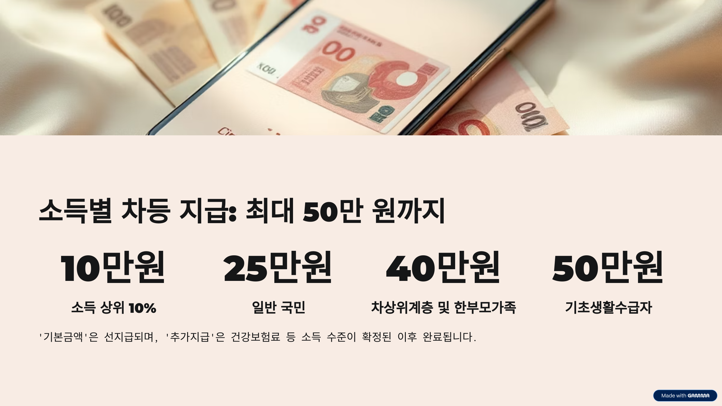 소득별 차등 지급: 최대 50만 원까지