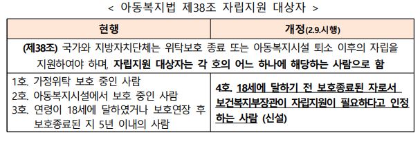자립준비청년 지원정책 개정(보건복지부 보도자료)
