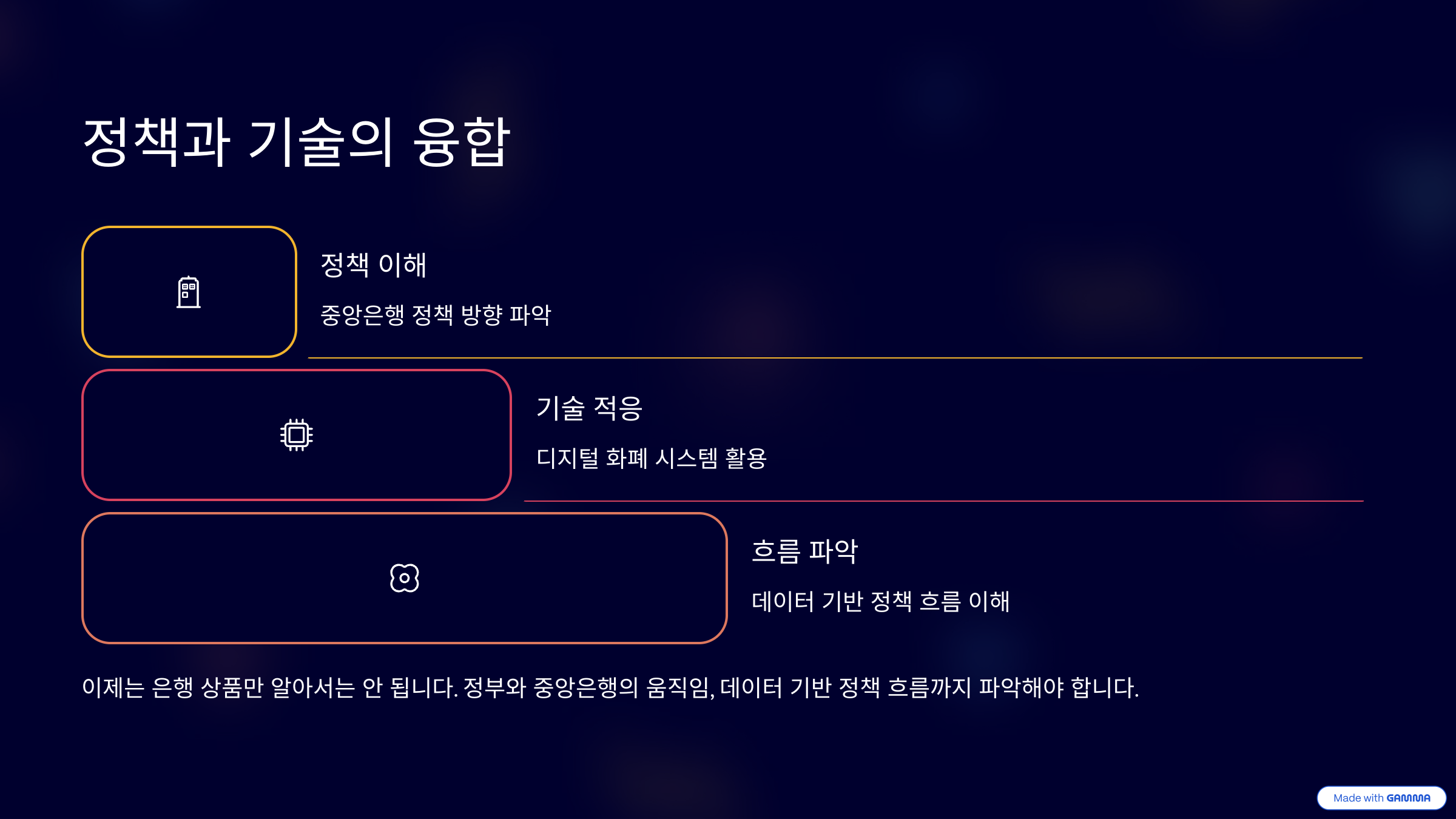중앙은행의 정책 방향과 기술 구현 방식, 소비 흐름을 이해하고 적응하는 것이 중요한 이유다. 더 이상 단순히 은행 상품만 알아서는 안 된다. 이제는 정부와 중앙은행의 움직임, 데이터 기반 정책 흐름까지 파악할 수 있어야 제대로 된 금융 생활을 할 수 있다.