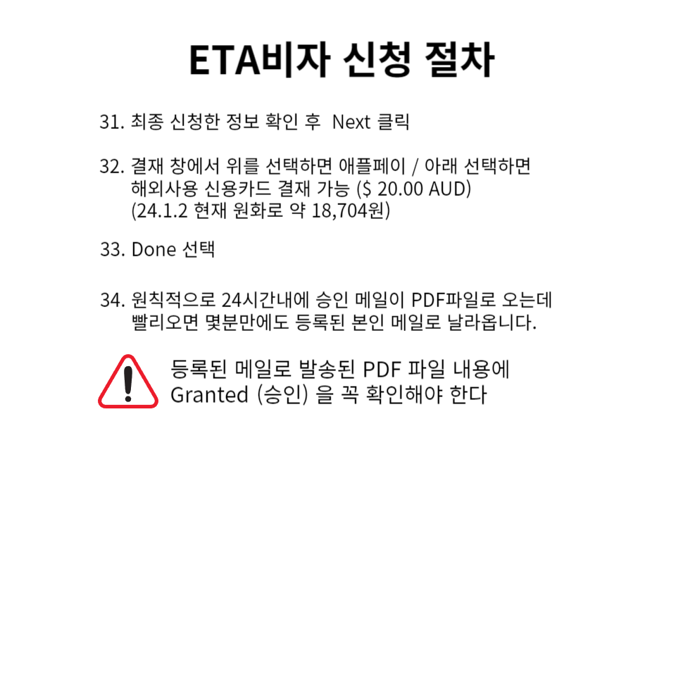 ※ ETA 비자 신청 후 꼭 확인해야 할 사항 : 아래 캡처된 승인 메일의 "Granted"를 꼭 확인하셔야 됩니다.