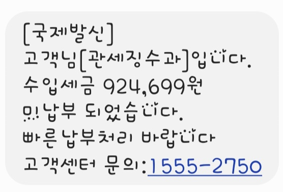 < 관세미납 스미싱 문자 > 휴대폰으로도 많이 날라옵니다. 절대 클릭하면 안됩니다. 바로삭제!!
