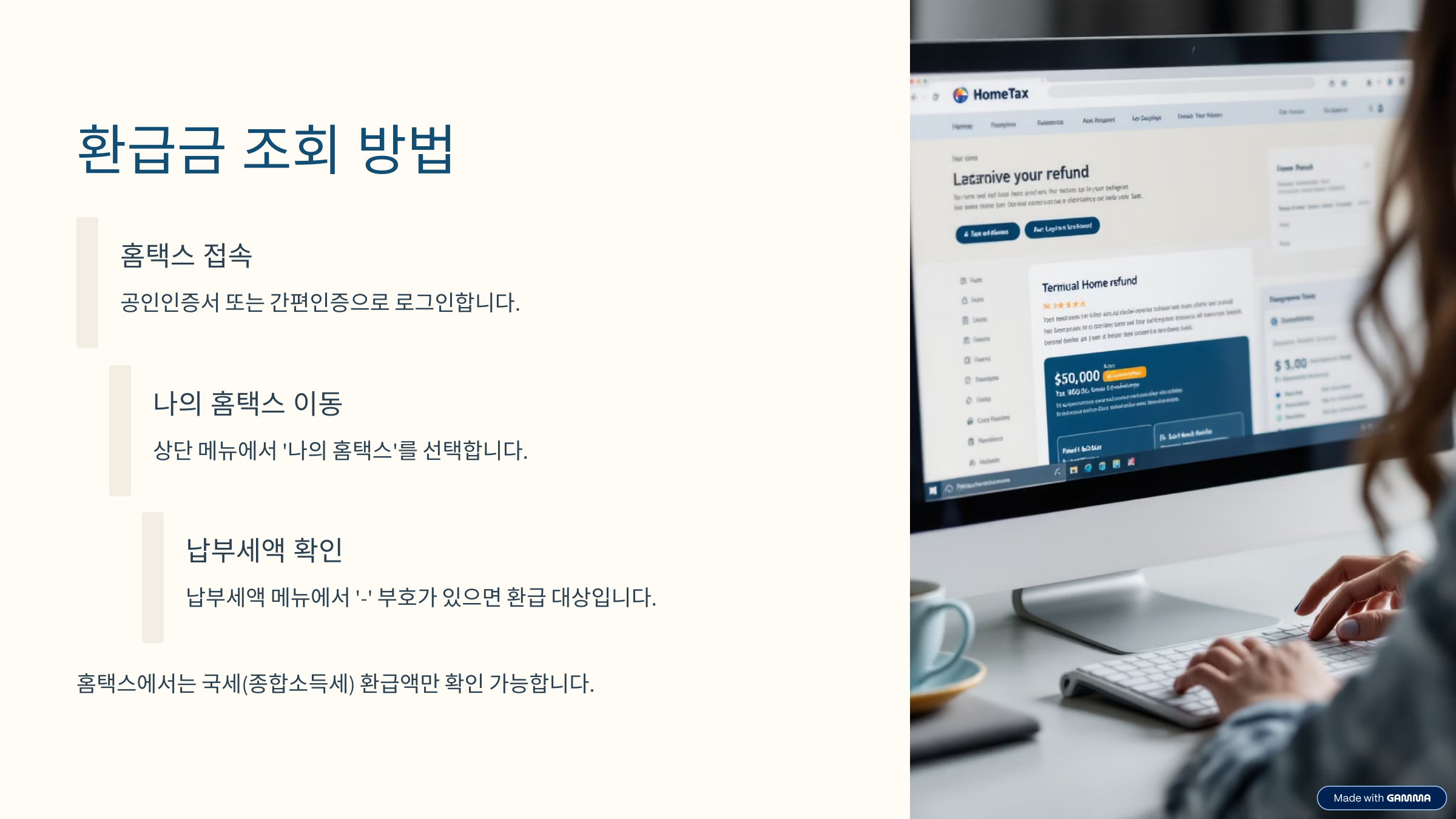 주의할 점은 홈택스에 표시되는 금액은 국세(종합소득세)만 해당된다는 점입니다. 지방세 환급액은 별도로 정리되지 않으며, 국세 환급 이후 해당 지자체에서 개별적으로 입금됩니다.
