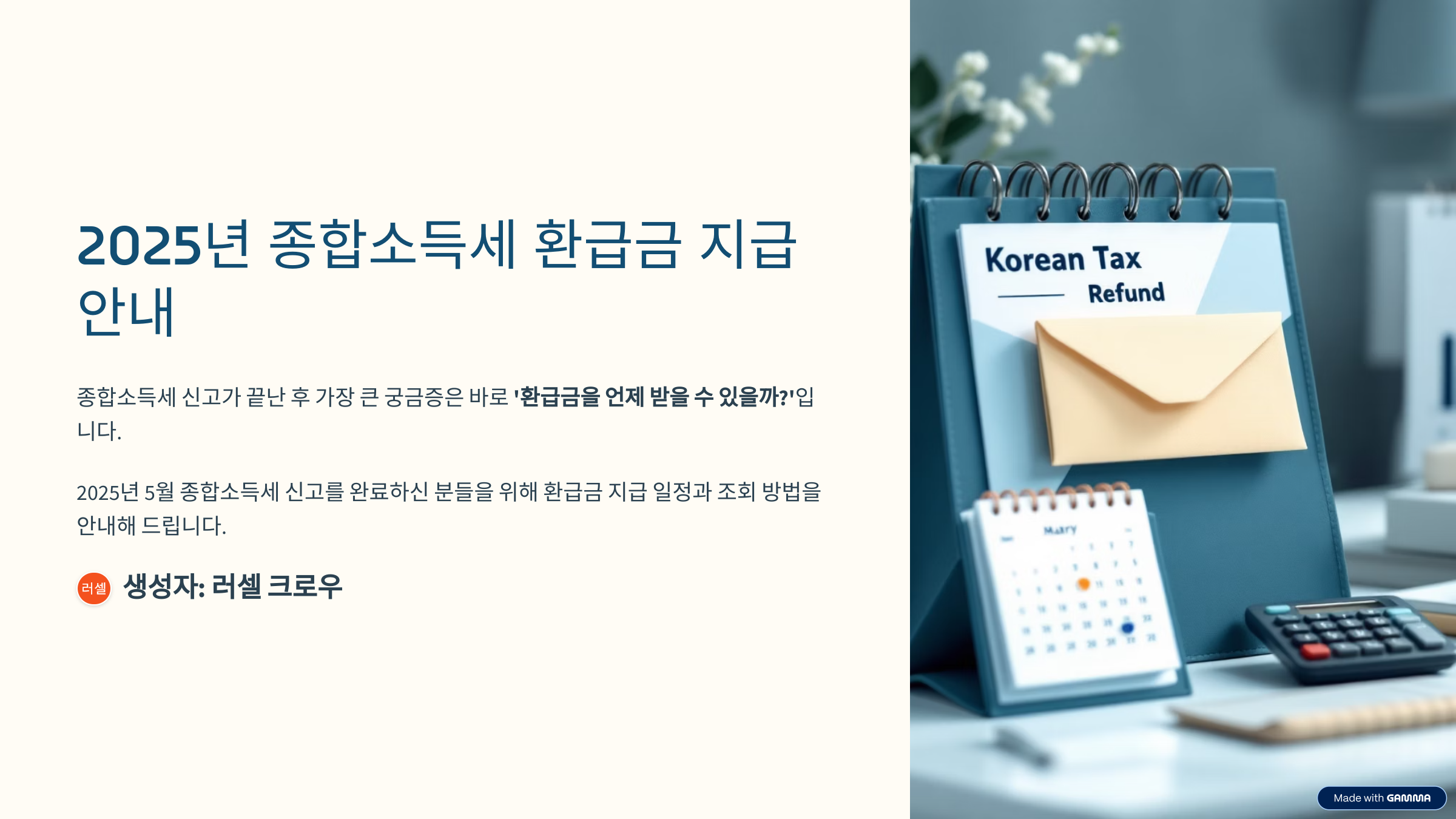 종합소득세 신고가 끝나면 자연스럽게 따라오는 궁금증이 있습니다. 바로 '언제쯤 돌려받을 수 있을까?' 하는 환급일입니다. 2025년 5월 종합소득세 신고를 완료하신 분들이라면 이제 환급금 지급 일정이 가장 큰 관심사일 텐데요. 작년 기준 지급 시점과 함께 올해 환급일 예상 시기, 조회 방법까지 꼼꼼히 정리해드릴게요.