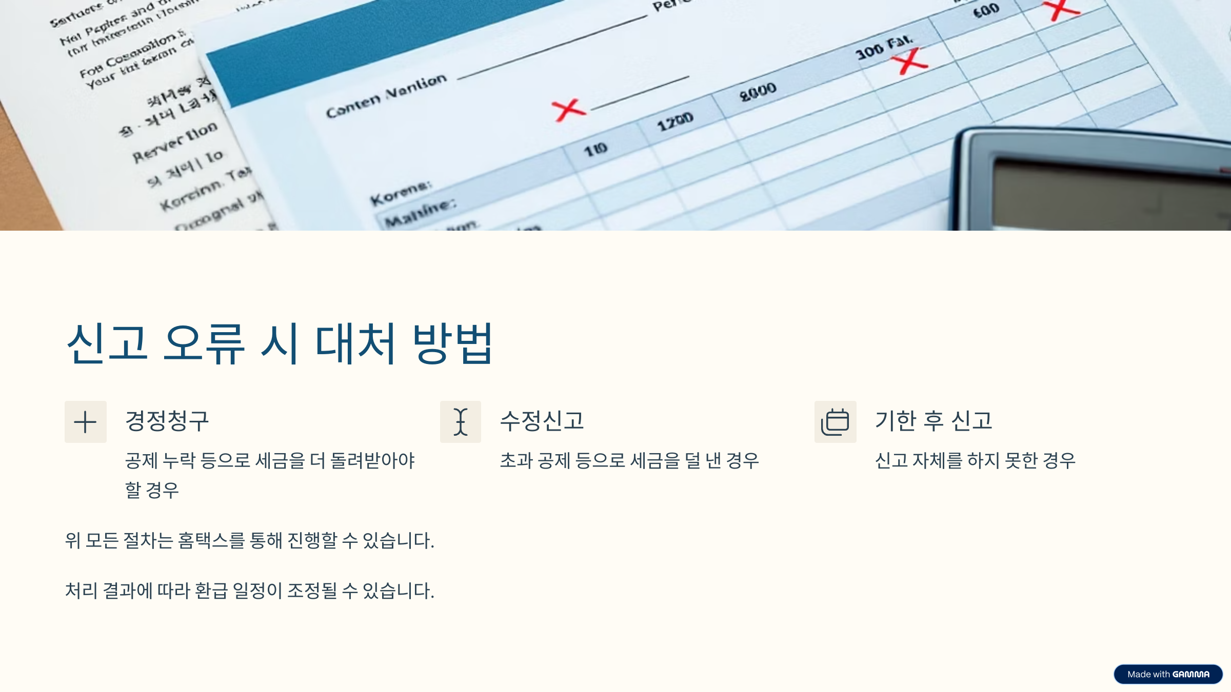 위 세 가지 경로는 모두 홈택스를 통해 접수할 수 있고, 처리 결과에 따라 환급 일정은 다시 조정될 수 있습니다.