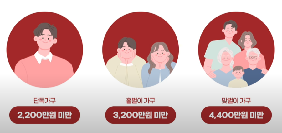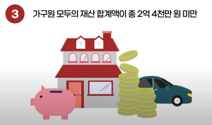 - 가구원 모두의 재산 합계액이 2억 4천만 원 미만일 것