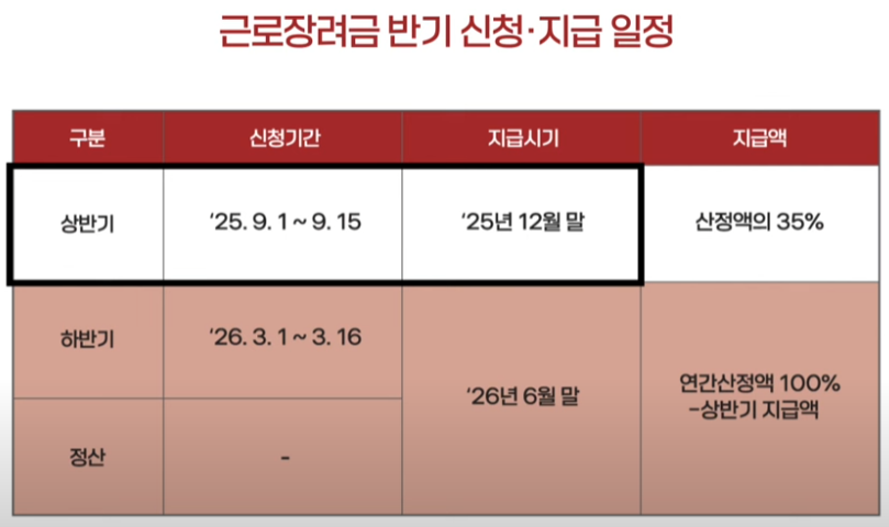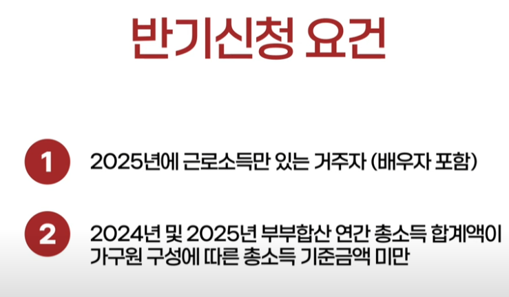 - 상반기 소득분: 2025년 9월 1일~9월 15일 신청 → 2025년 12월 말 지급