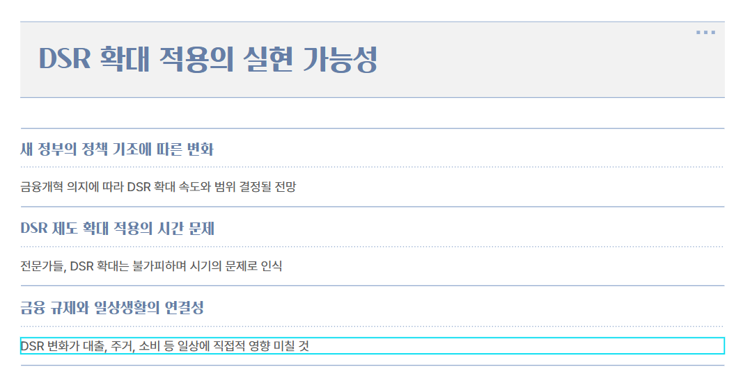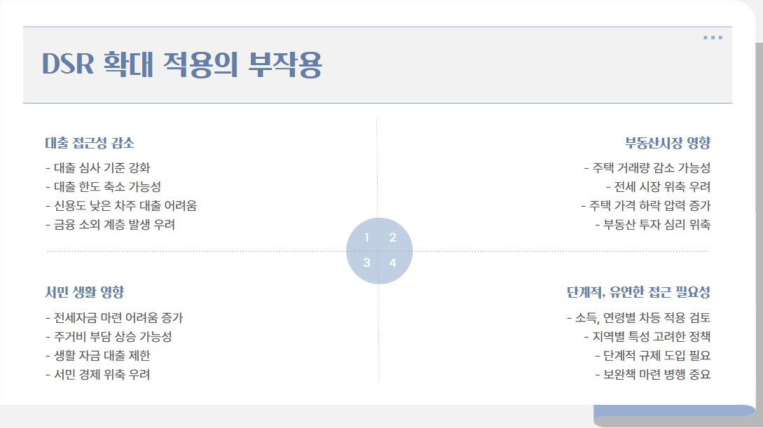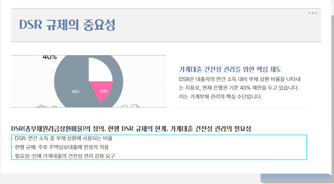 DSR은 단순한 수치 규제가 아니라, 금융 안전망과 직접 연결된 핵심 제도입니다. 이제는 DSR 적용 대상의 범위를 재정비하는 것이 불가피하다는 공감대가 커지고 있습니다.